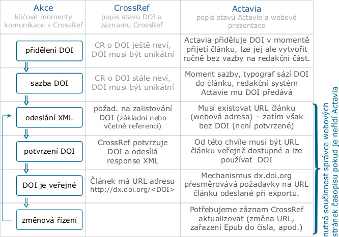Schéma komunikace mezi Actavií a CrossRef serverem při přidělení DOI